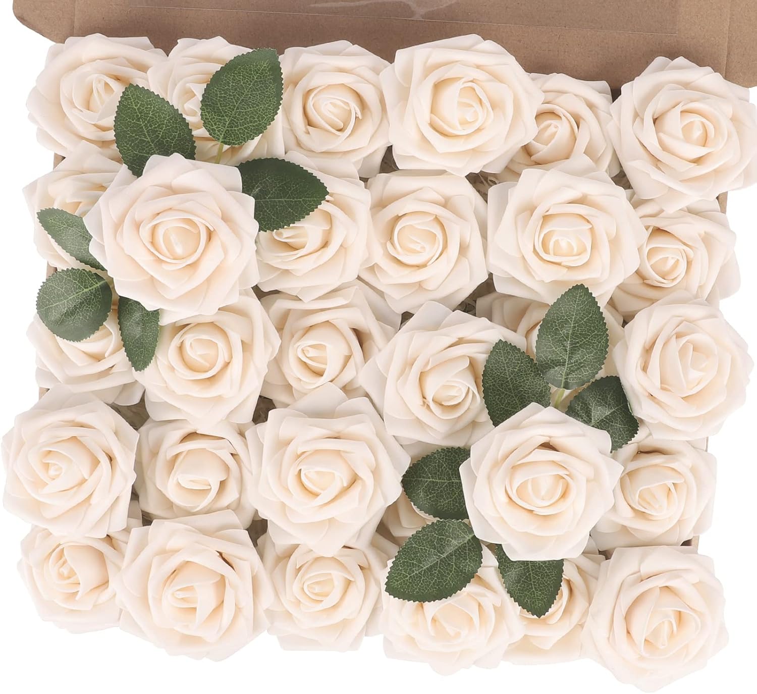 MACTING Artificial Flower Roses 30PCS Real Touch Fake Flowers with Stem Foam Roses for DIY Wedding Bouquet Table Centerpieces Bridal Shower Party Home Spring Valentines Day Decorations (Cream)