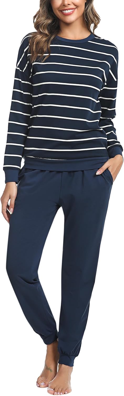 Soft Womens Pajama Sets Cotton Long Sleeve Pj Sets Comfy 2 Piece Sleepwear Cozy Loungewear Nightwear With Pockets