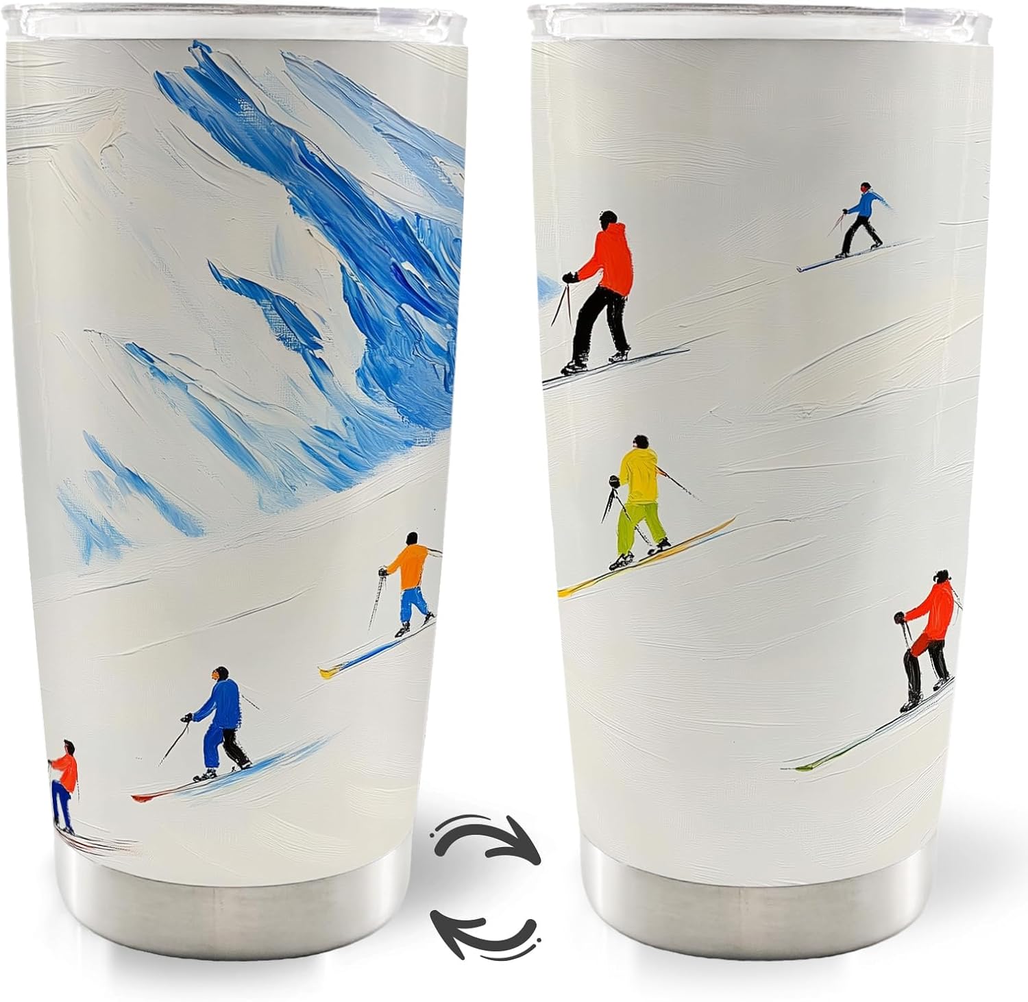 Winter Skiing Skier 20oz Travel Coffee Mug Tumbler, Christmas Ski Skiing Gifts for Skiers Men Women, Winter Skier Gifts, Skiing Christmas Water Stainless Steel Tumbler with Lid and Straw