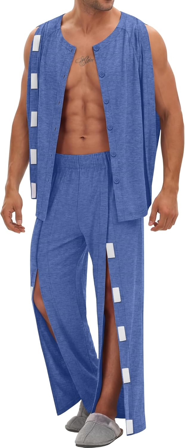 Mens Post Shoulder Surgery Shirt Tear Away Pant Fully Open Bedridden Patient Clothing Adaptive Hospital Gown Set