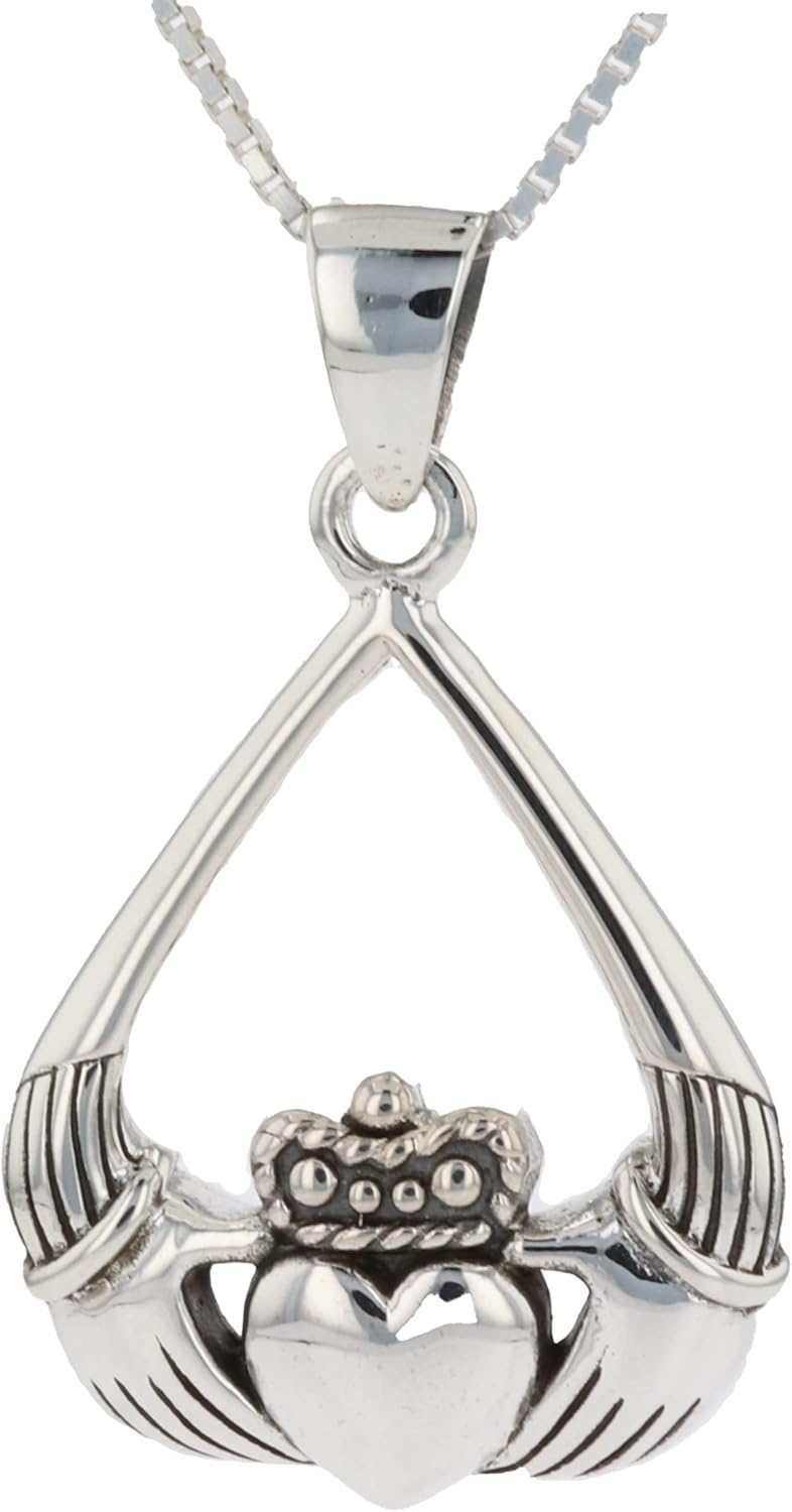 Jewelry Trends Celtic Claddagh Tear-drop Irish Sterling Silver Pendant Necklace 18"