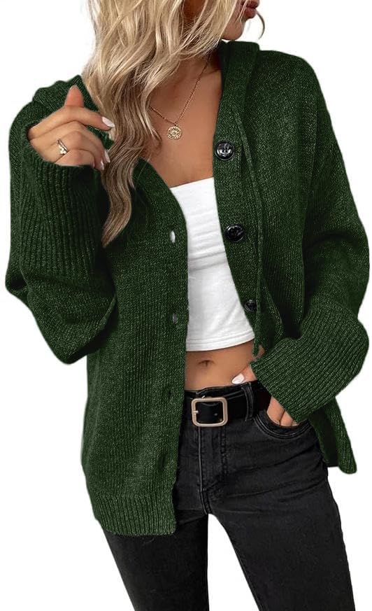 WROLEM Women Open Front Cardigan Sweater Long Sleeve Hooded Button Down Cable Knit Loose Outerwear Lightweight Clothes Coat