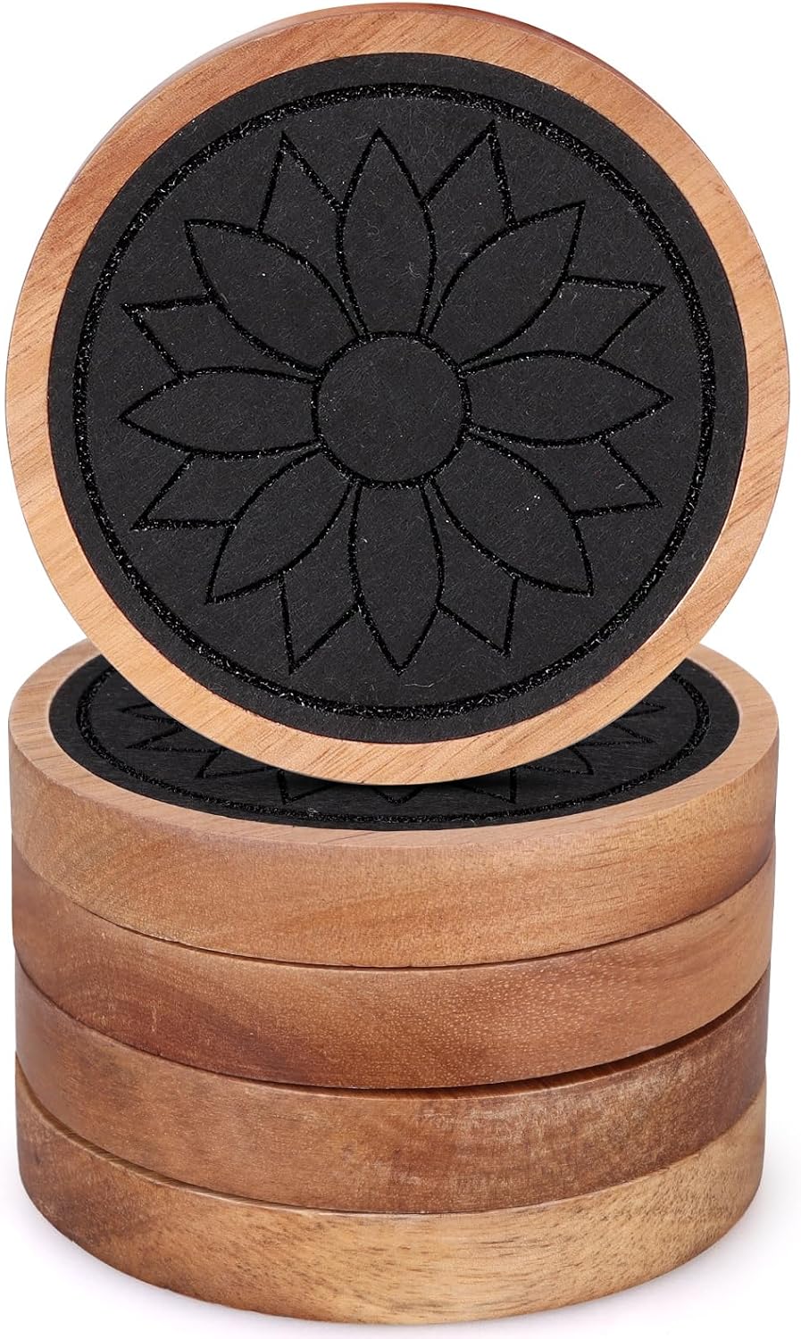 - Non-slip & Non-stick Cups: These wooden coasters feature four soft anti-slip pads on the bottom to protect furniture from scratches and prevent sliding. The high-quality felt absorbs moisture without sticking to your glass—preventing spills and reducing noise. Perfect for both hot and cold drinks.