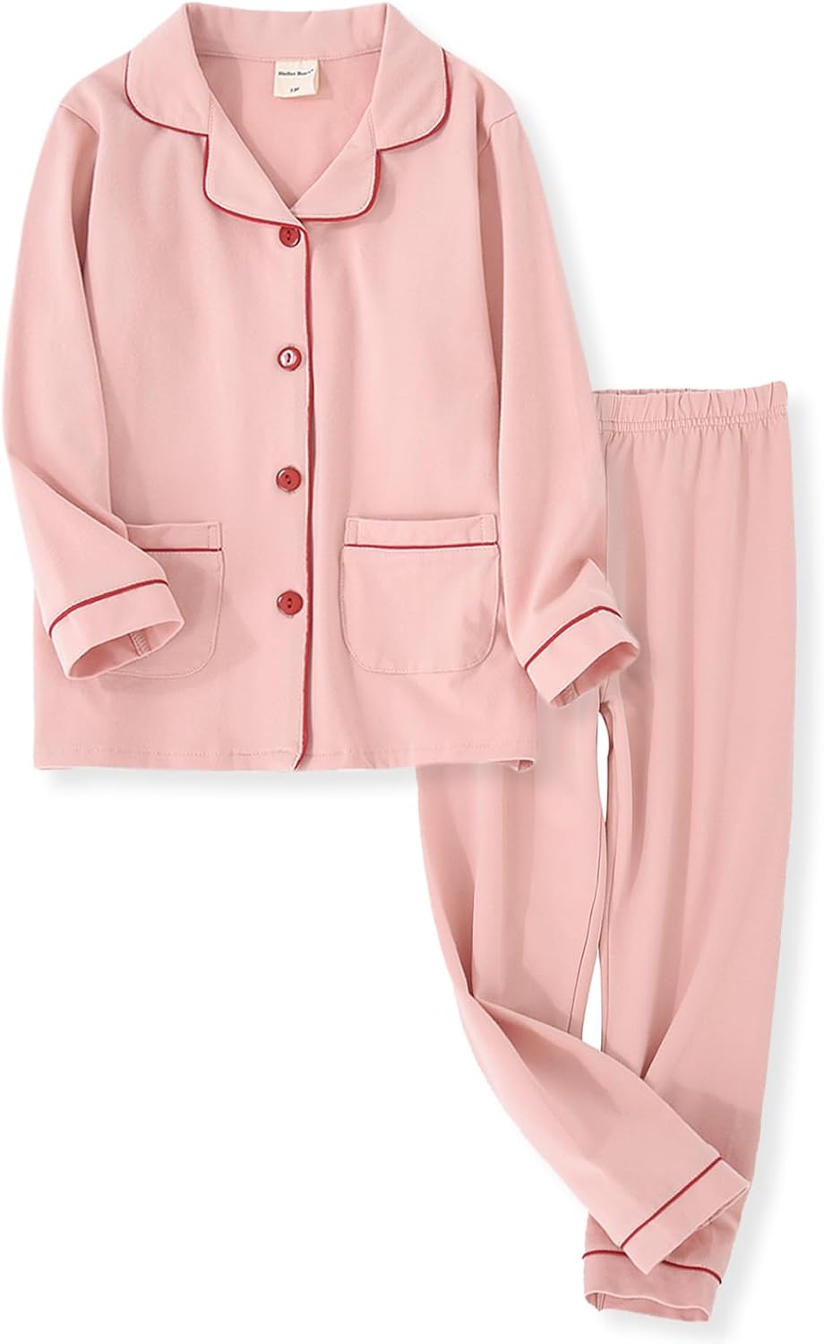 ACESTAR Kids Girls Boys Cotton Pajamas Set Long Sleeve Button Down Pjs Sleepwear Loungewear 2 Piece Set for Daily Size 3-12