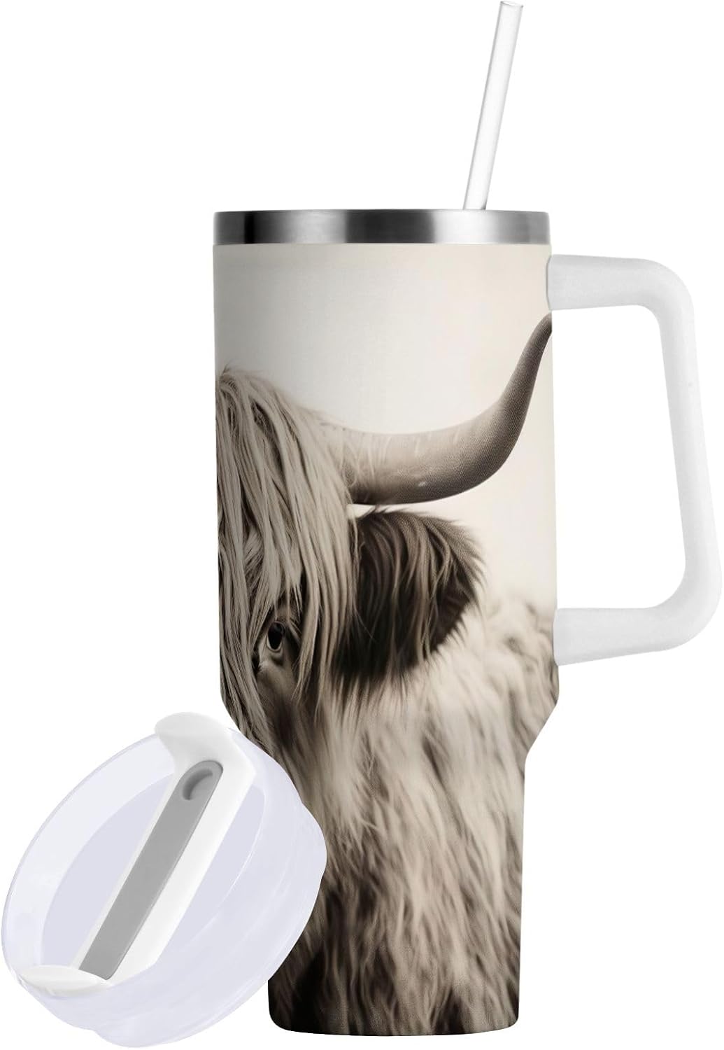 YETTASBIN Highland Cow 40 oz Tumbler with Handle, Stainless Steel Vacuum Insulated Sports Water Bottle, Leak-proof Travel Coffee Mug Cup with Lid and Straw for Water, Iced Tea or Coffee