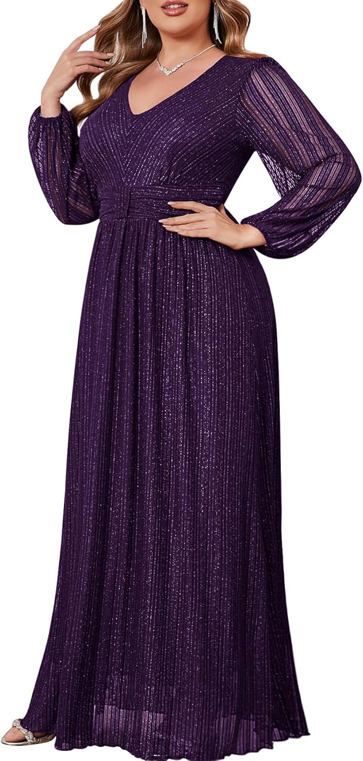 CYCLAMEN Plus Size Sparkly Formal Dress Lace Maxi V Neck Cocktail Evening Gown Wedding Guest