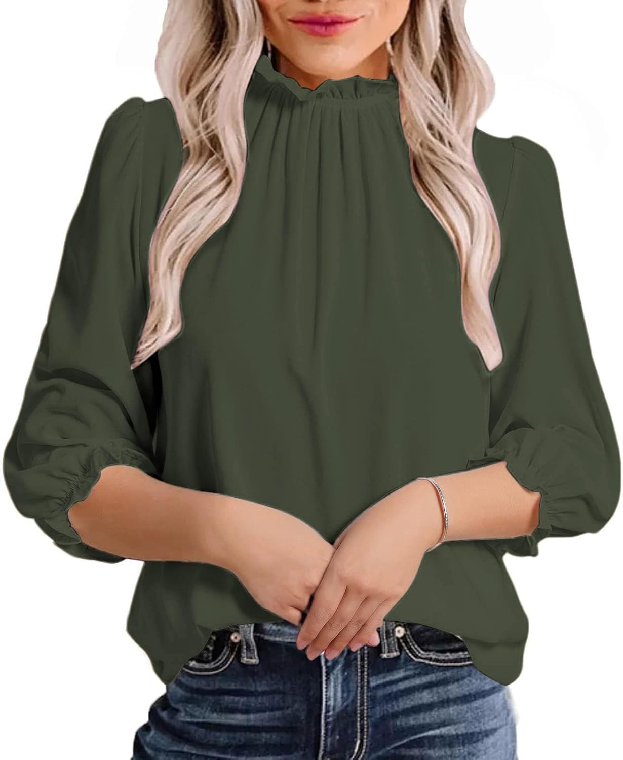 Avanova Women Polka Dot Long Sleeve Blouse Shirts Work Mock Neck Ruffle Top