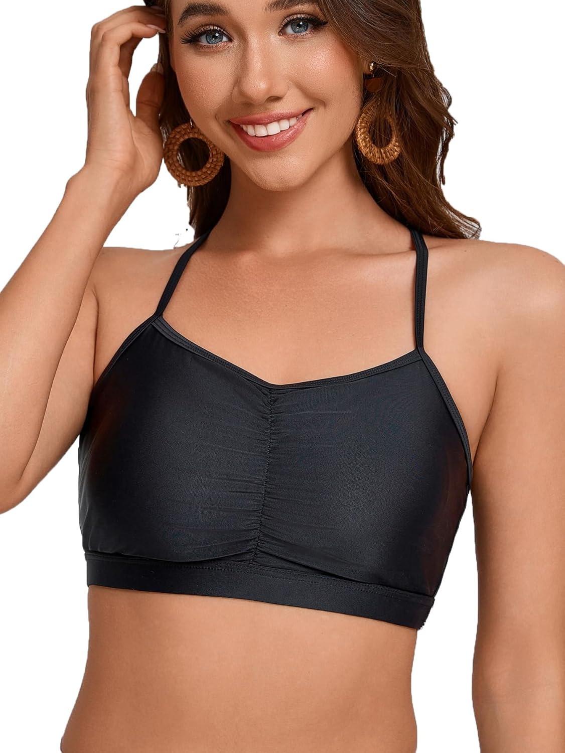 Womens Ruched Sport Swim Bra Adjustable Bikini Tops Bathing Suit Top Swimsuit Built in Bra