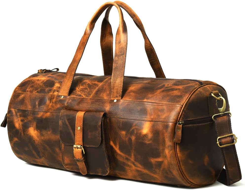 - ✔️DURABLE BUFFALO LEATHER: This leather duffle bag for men is made of genuine buffalo leather which is durable partner for your travels. A great carry on overnight bag is handcrafted by skilled artisans to lasts for years. Our leather luggage bag is perfect for weekend gateway plans with spacious, super stylish and functional to carry all your travel necessities. It gives vintage leather bag feels which is favorite among men and women equally.