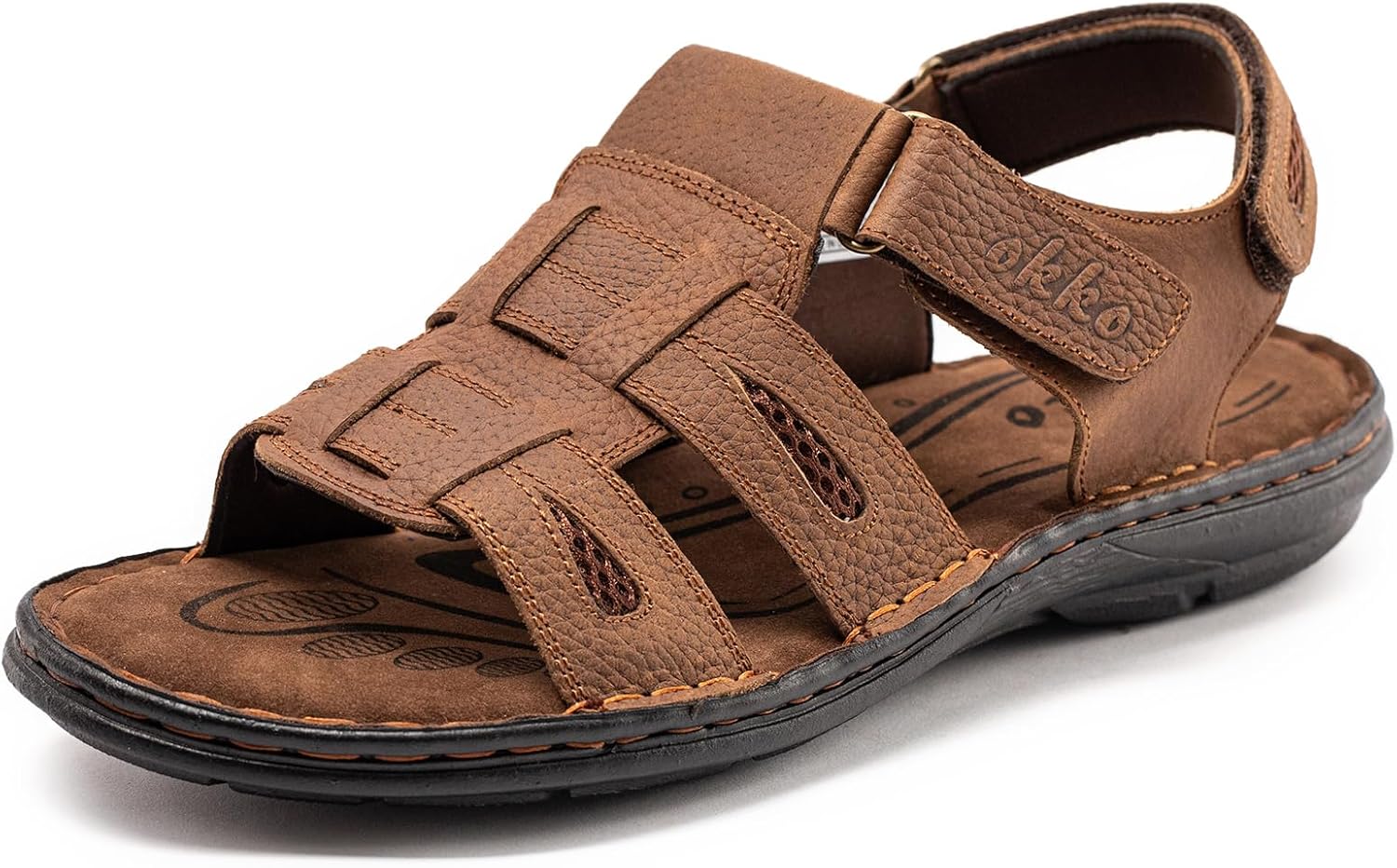OKKO Mens Leather Sandals Open Toe Athletic Fisherman Sandal Casual Summer Outdoor Shoes for Men
