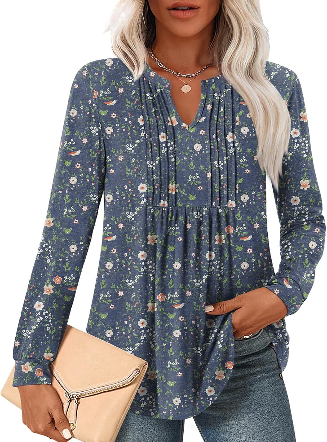 Anyally Women Fall Long Sleeve Tunic Tops Plus Size Dressy Casual Blouses Pleated Shirts for Leggings