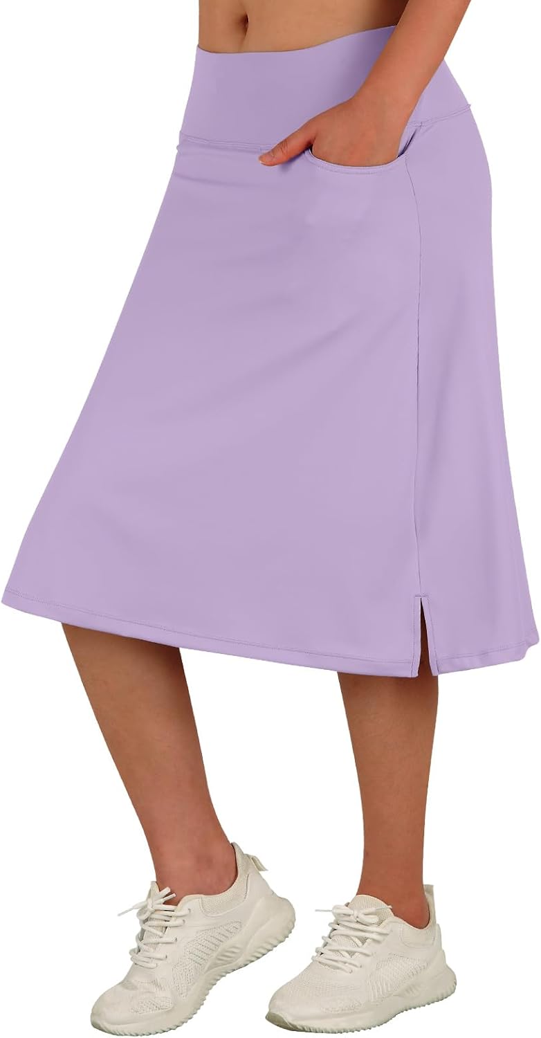 Women's Midi Length Skorts Skirts with 3 Pockets Modest Skirts Women's 24" Knee Length Skort