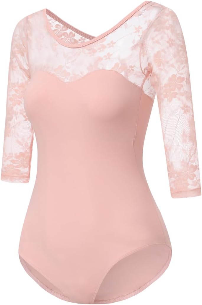 Limiles Adult Ballet 3/4 Sleeve Lace Back Leotard for Women Dance Ballet