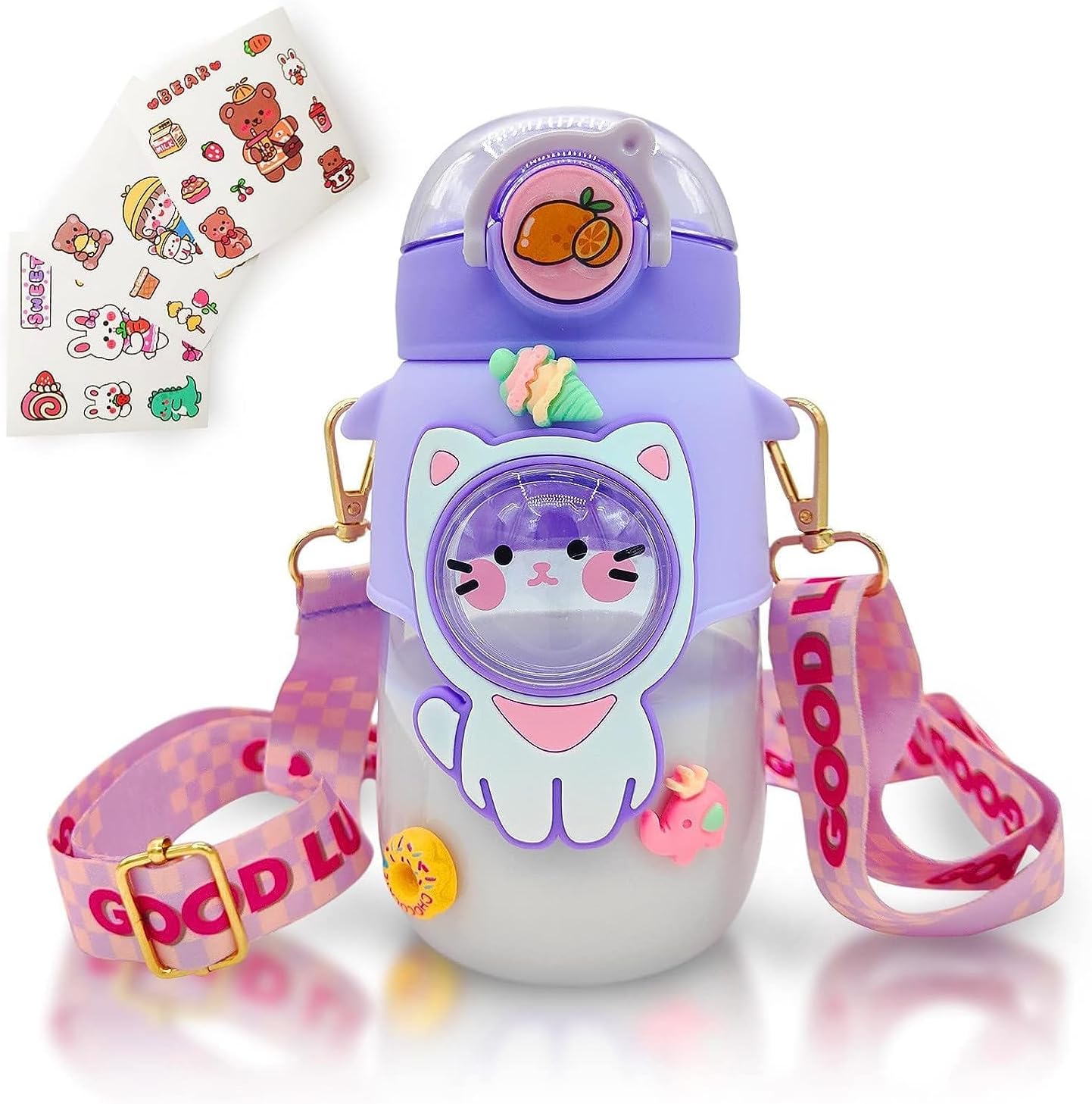 - ❤【Leakproof Design】- The kawaii water bottle mouth with straw adopts a seal design to keep the straw clean. The bottle can be cross-carried on your back, and also can be put into bags to enjoy traveling and outdoor sports.