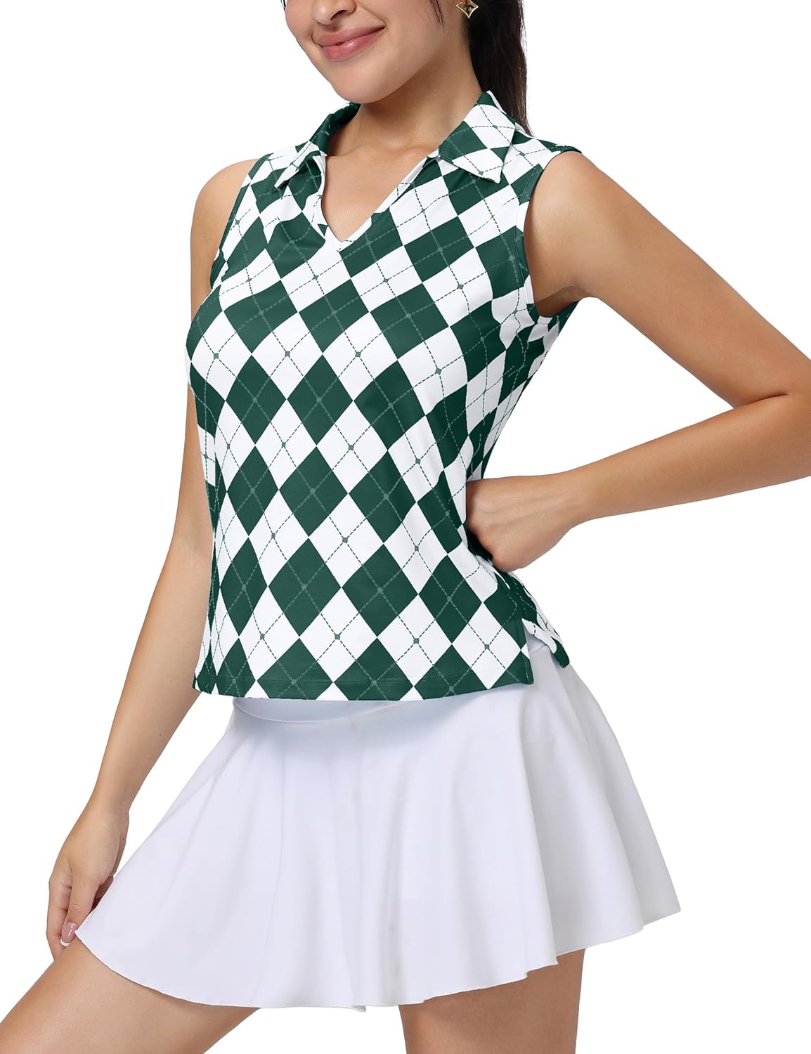 MathCat Womens Golf Shirt, UPF 50+ Argyle Tennis Polo, Sleeveless Lightweight Sports Athletic Tank Tops