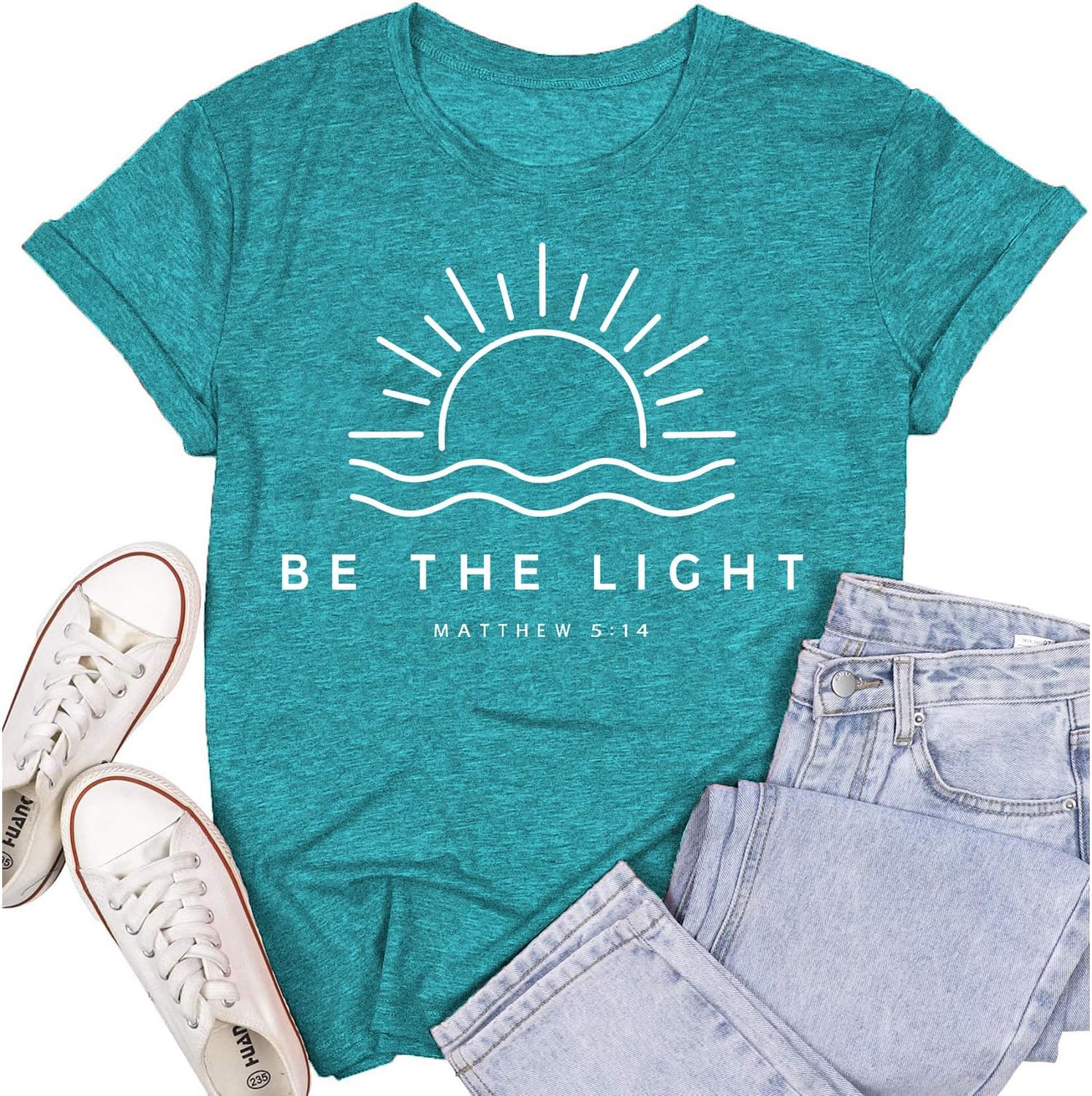 Womens Faith Shirts Christian Cross T-Shirts Bible Verse Blessed Letter Printed Tees Inspirational Tops