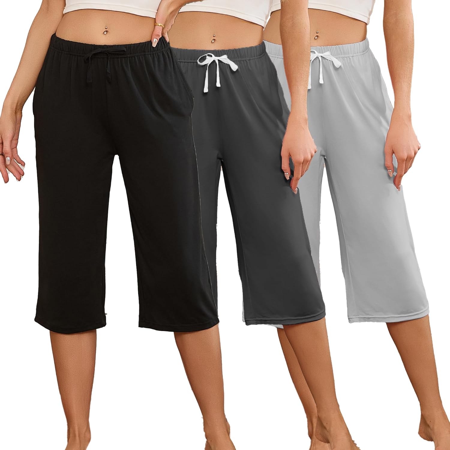 U2SKIIN 3 Pack Womens Pajama Pants Capri Lounge with Pockets Comfy Drawstring Pj Bottoms Casual Summer Sleep