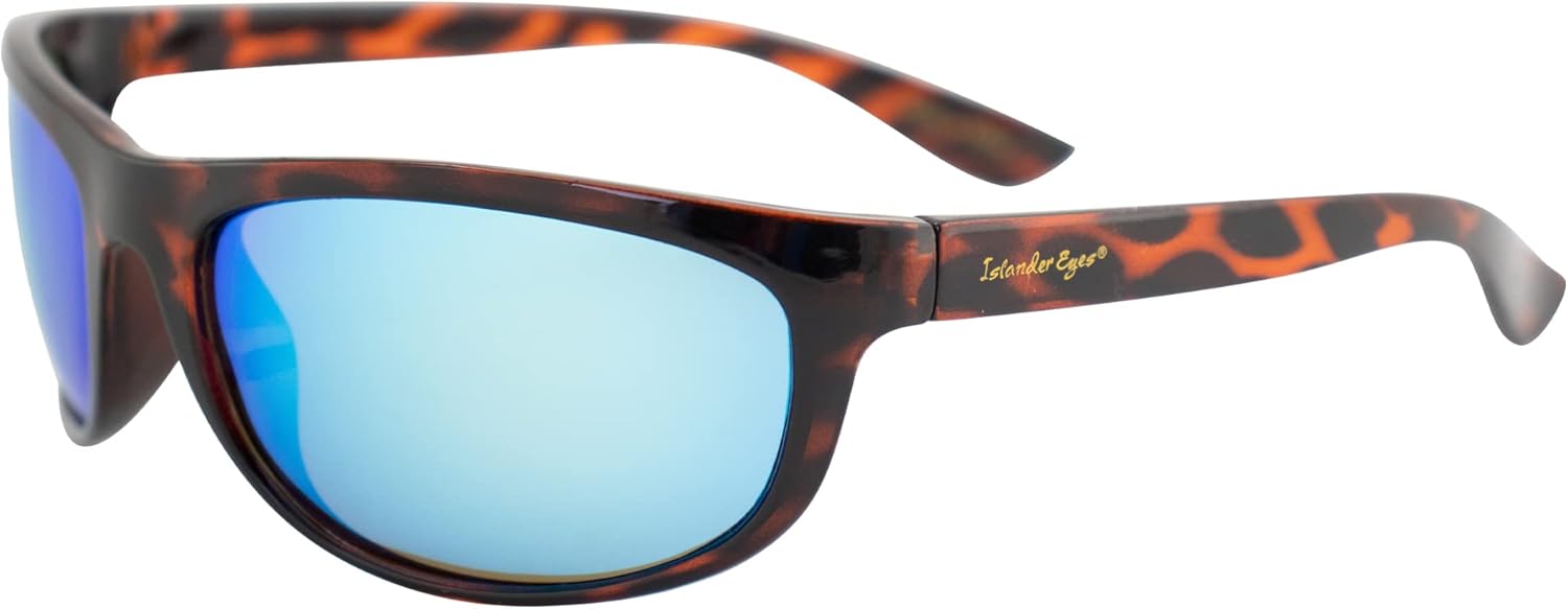 Martinique Polarized Sunglasses for Men or Women Sports Wraparound Tortoise Frame w/Blue Mirror Lens