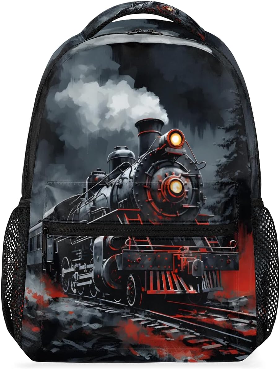 Bardic Vintage Train Kids Backpack for Boys Girls, 16 Inch School Backpack Locomotive Train Elementary School Bag Students Bookbags Travel Laptop Backpacks Casual Daypack