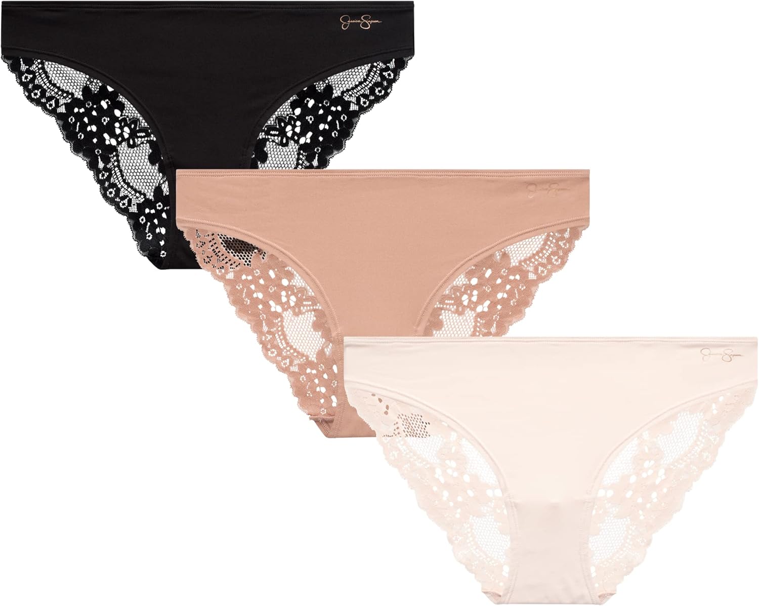 Jessica Simpson Women's Underwear - 3 Pack Microfiber Lace Bikini Panties (S-XL)