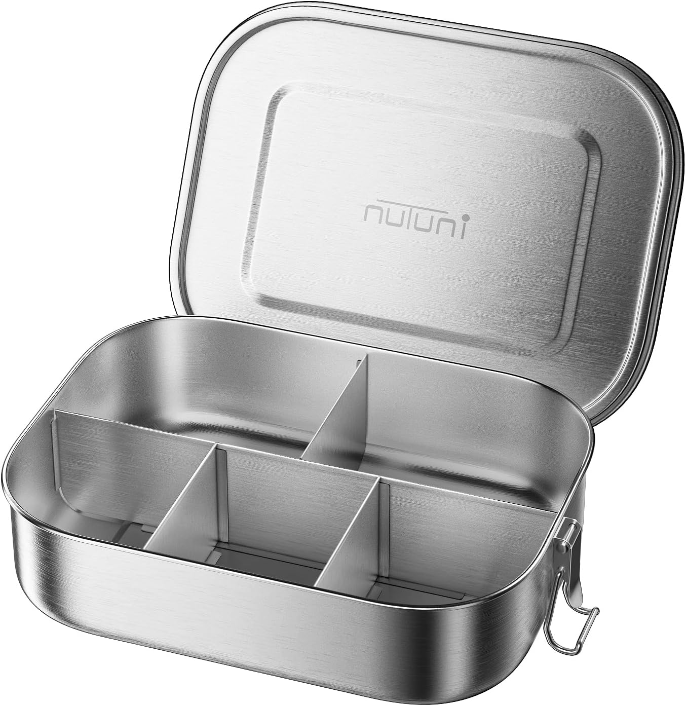47oz/1400ML Stainless Steel Lunch Box, 5 Compartments Bentobox for Kids or Adults, Metal Bento Box with Lockable Clips, Leakproof Food Storage Container for Work Lunch