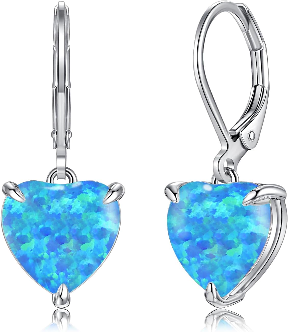 CiNily Heart Opal Earrings Leverback Drop Earrings for Women Hypoallergenic, Pendant Earrings 14K White Gold/Rose Gold Dangle Earrings Opal Hoops Birthday Wedding Mothers Day Jewelry Gifts