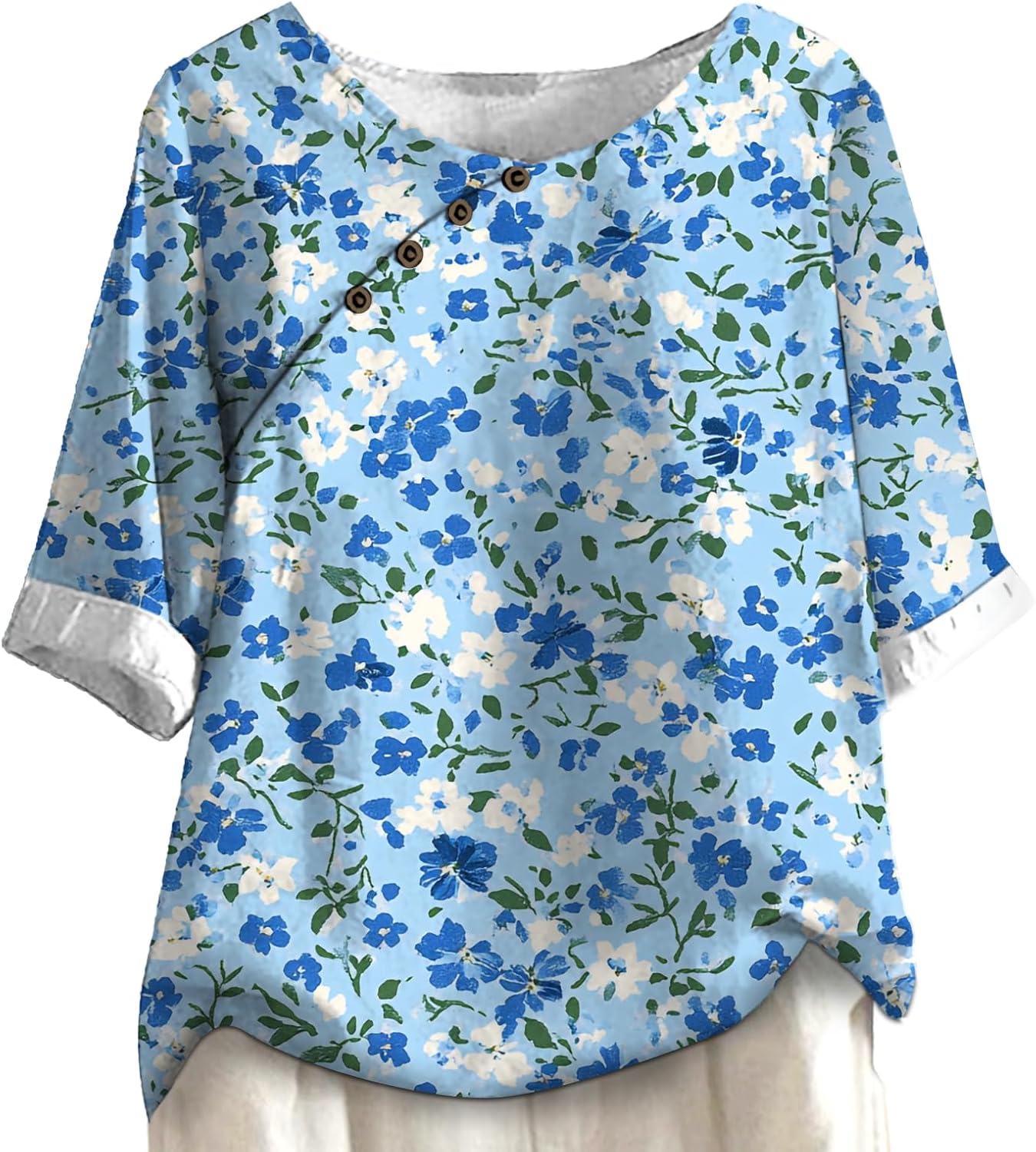 Womens Short Sleeve Elegant Blouse Asymmetrical Button Detail Polyester Top Loose Fit Summer Tunic Shirt