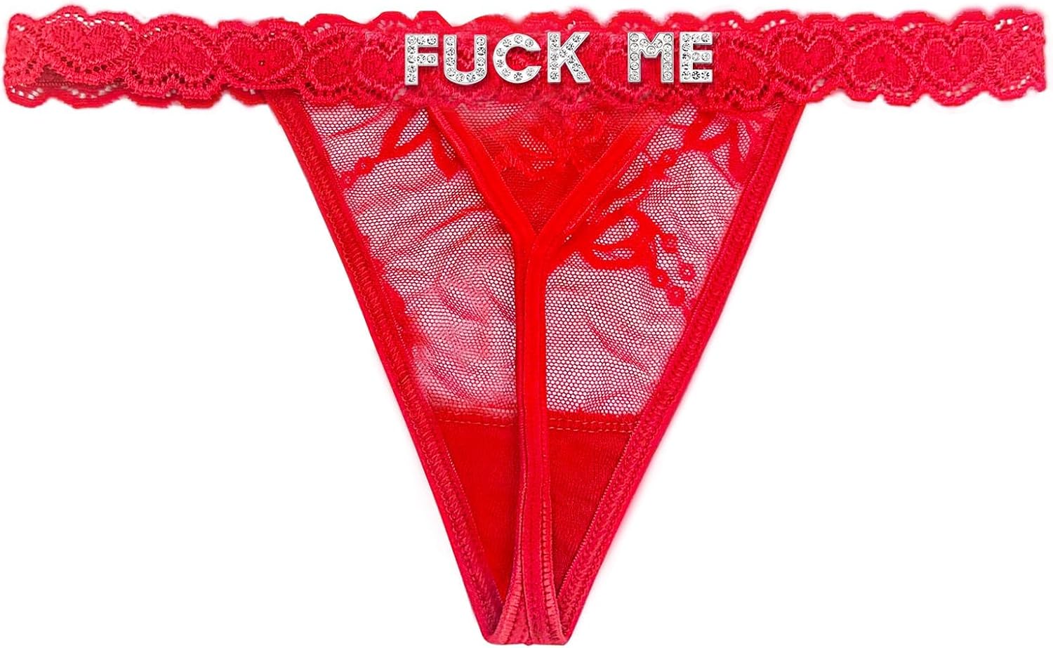 Women's Personalized Thongs with Funny Rhinestone Letters, Custom Name Underwear Panties for Couples