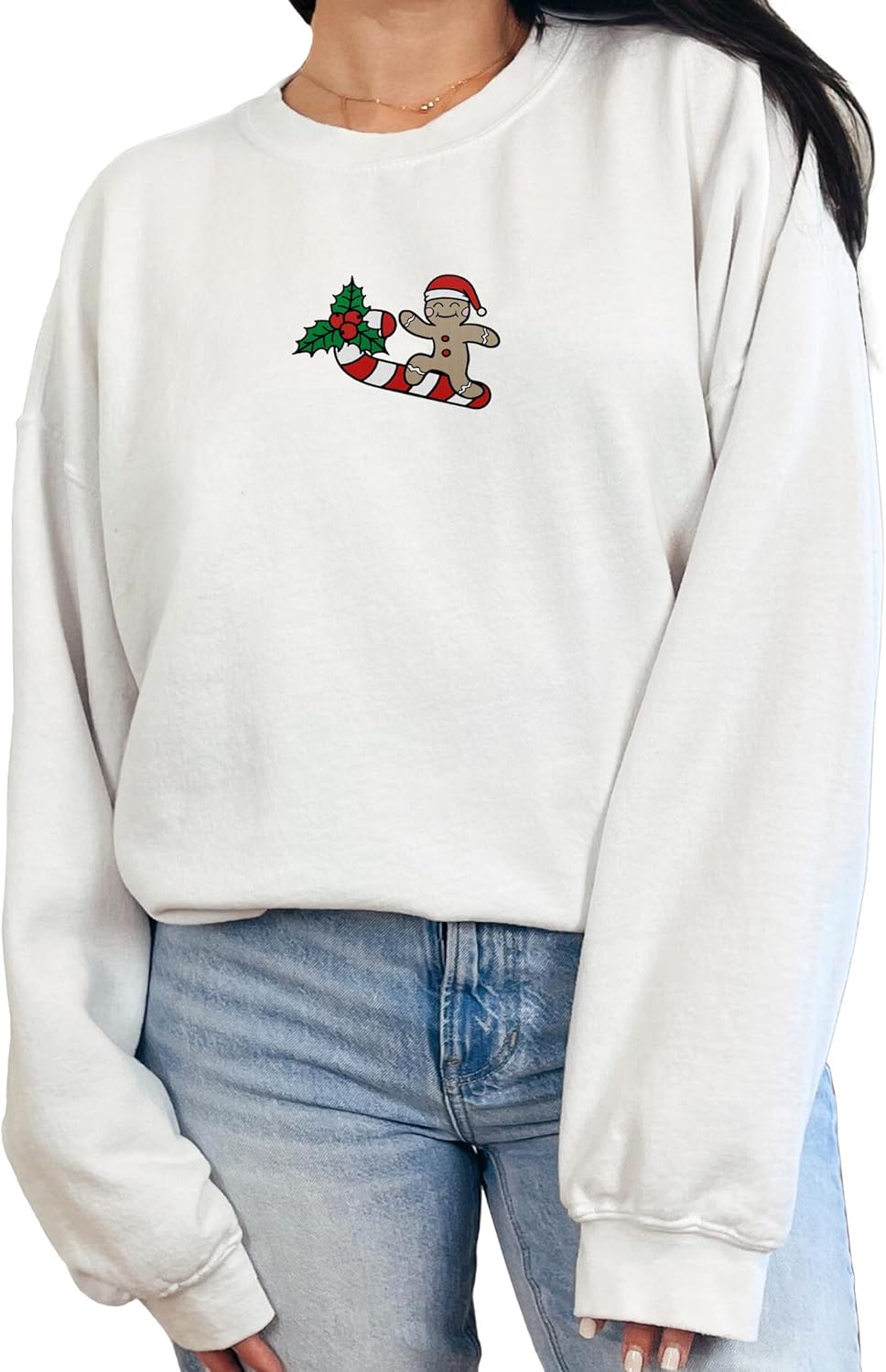 Embroidered Christmas Gingerbread Cookie Sweatshirt, Candy Holiday Sweatshirt for Women and Men, Cute Embroidered Christmas Sweater, Cozy Gingerbread Sweatshirt, Xmas Gift for Her or Him
