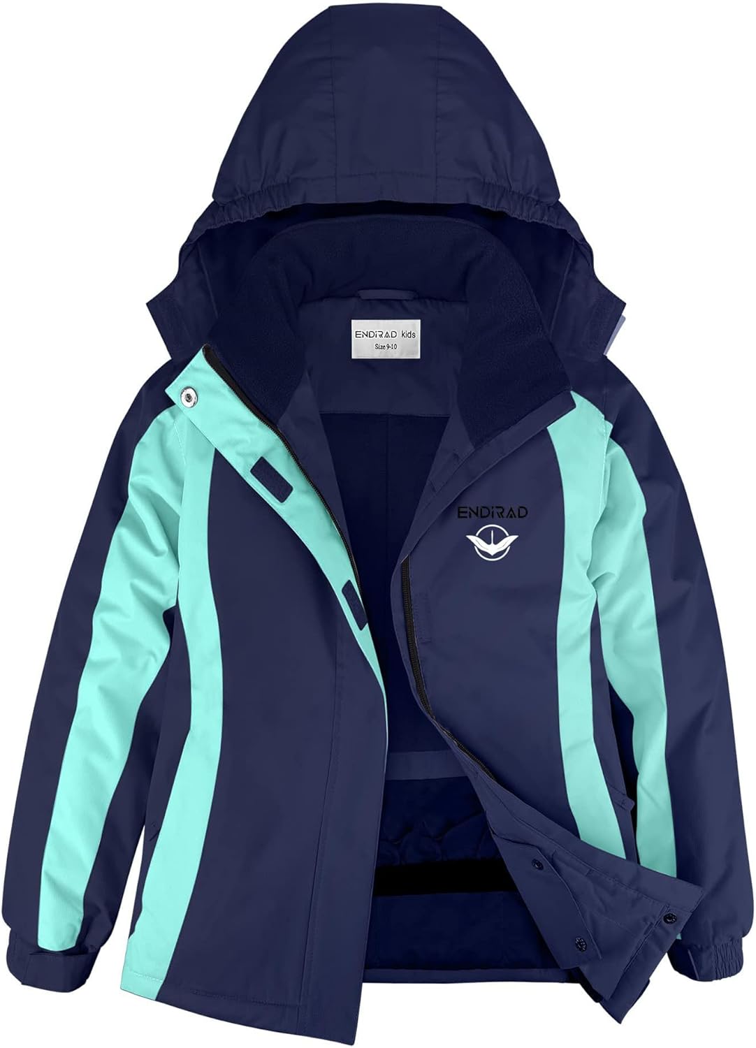 Girls Waterproof Winter Snow Coat, Kids Ski Snow Jacket for Girls, Warm Fleece Lined Winter Jacket with Hood