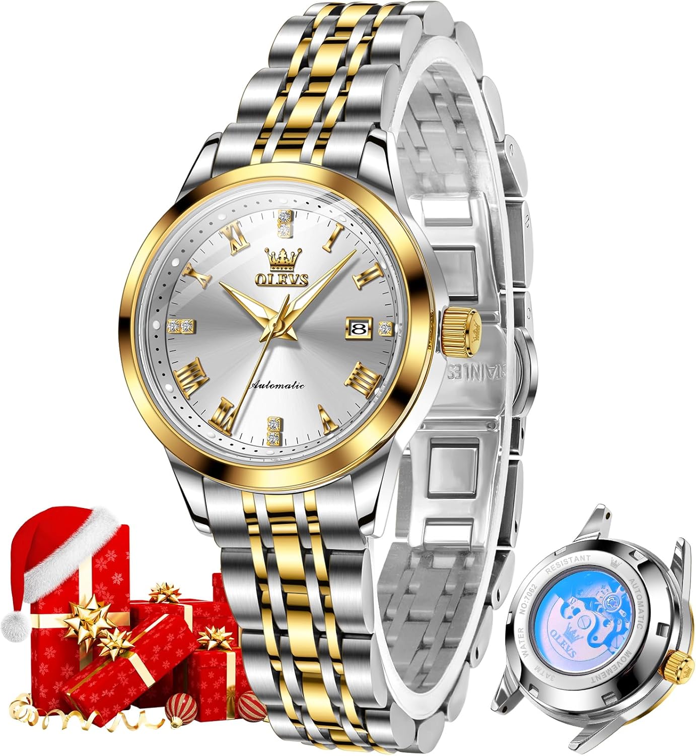 OLEVS Womens Automatic Watch Gold Luxury Diamond Self Winding Ladies Wrist Watches Waterproof Luminous Date