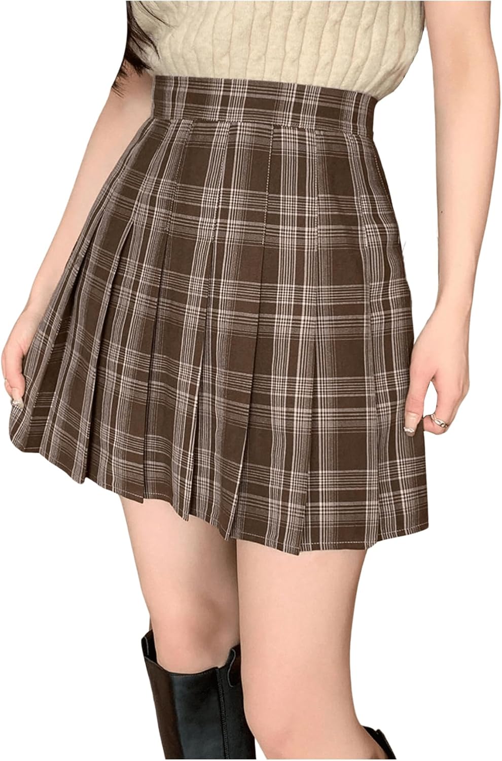 Floerns Women's Plaid Print Pleated Skirt Uniform Tartan Short Skater Skirt