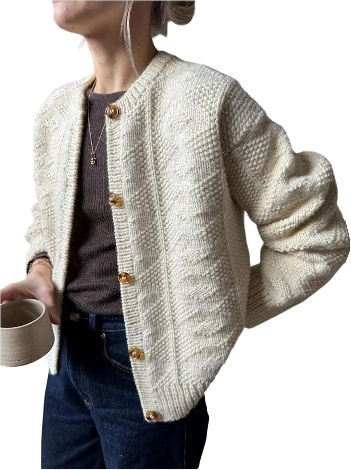 SOLY HUX Women's Button Down Cardigan Sweater Crew Neck Long Sleeve Knit Trendy Casual Outerwear