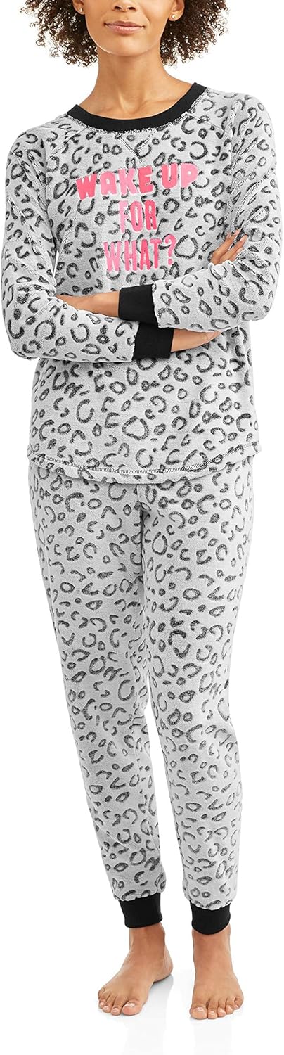 Secret Treasures Women's Applique Long Sleeve Top and Pant 2 Piece Pajama Set (XL, Black Soot Text)