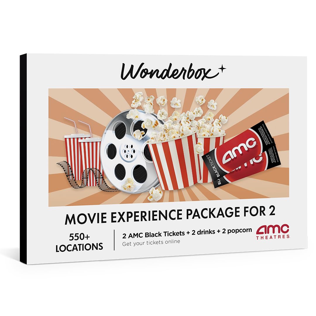 WONDERBOX AMC Movie Night Experience for 2, Gift Box with 2 Movie Tickets, Drinks & Popcorn, Valid at 550 Locations