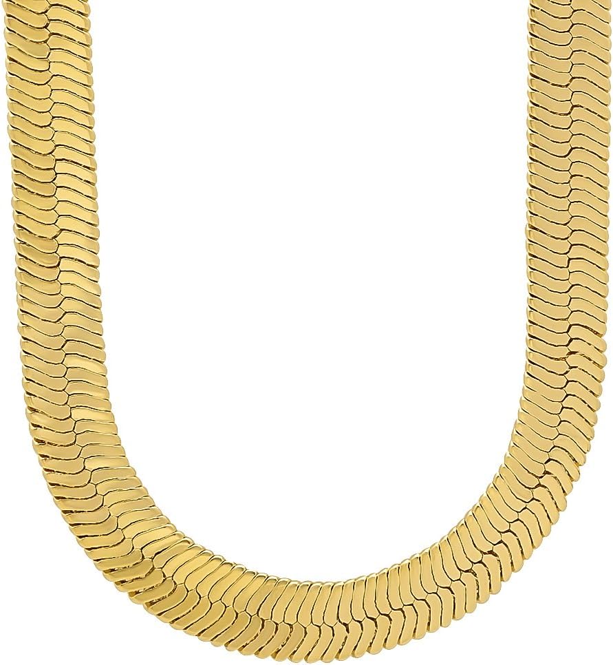 The Bling Factory 10.8mm 14k Yellow Gold Plated Flat Herringbone Chain Necklace