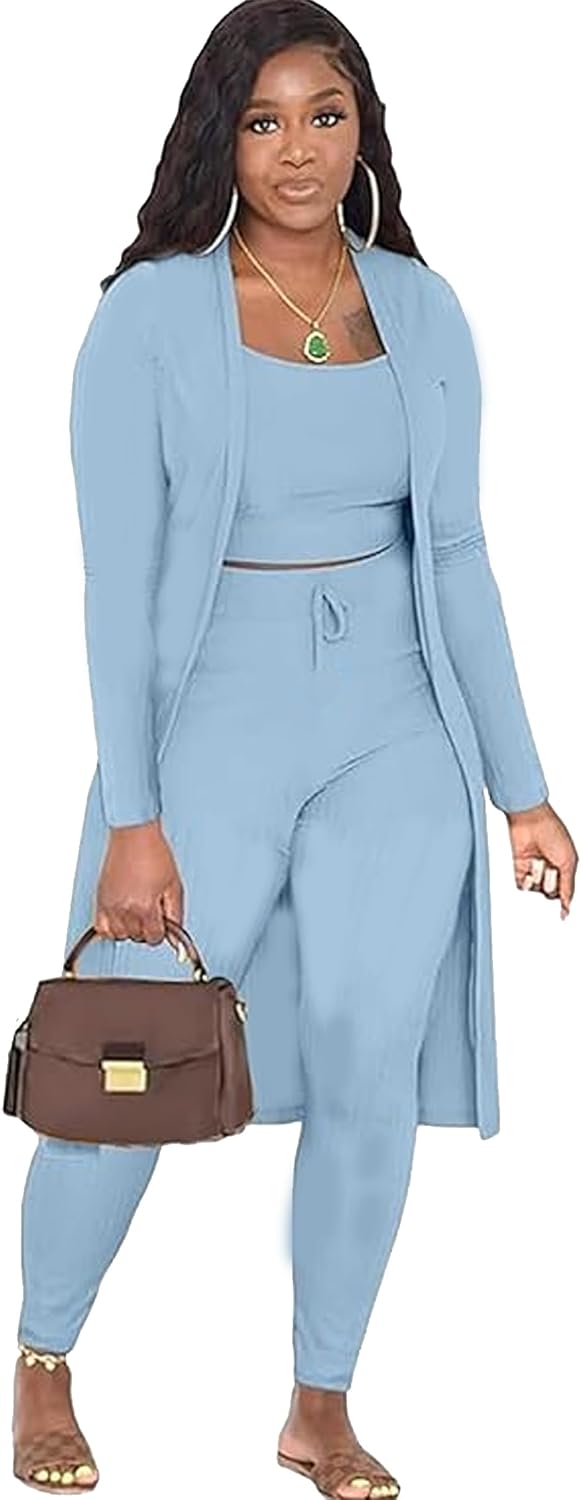 Womens 3 Piece Lounge Set Pajamas Set Long Cardigan Crop Tank Drawstring Pants Loungewear Outfits