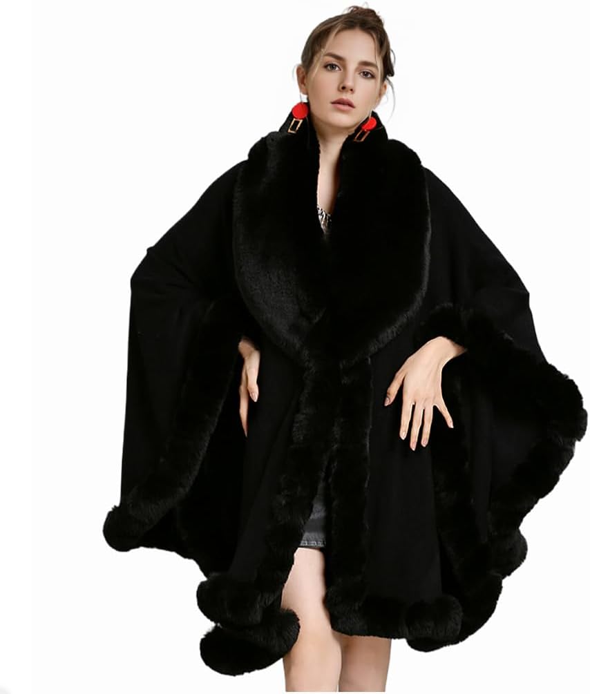 Women Fur Collar Cape Thick Cardigan Coats Fall Winter Faux Fur Shawl Cloak for Dress Evening Party
