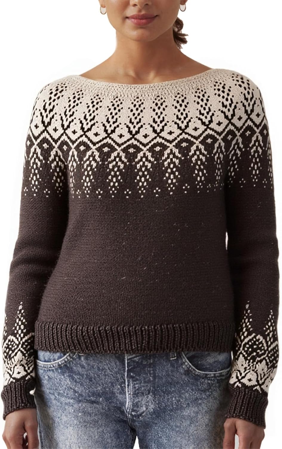 Women's Classic Fair Isle Pattern Knit Sweater 2024 Trendy Casual Loose Crewneck Long Sleeve Lightweight Jumper Tops