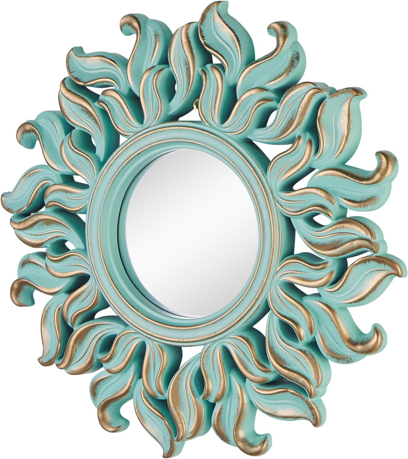 - The mirror is encased in a durable plastic frame that ensures long-lasting use while offering a lightweight, easy-to-hang design. The teal green color adds a refreshing vibe, enhancing the overall look of your home decor.