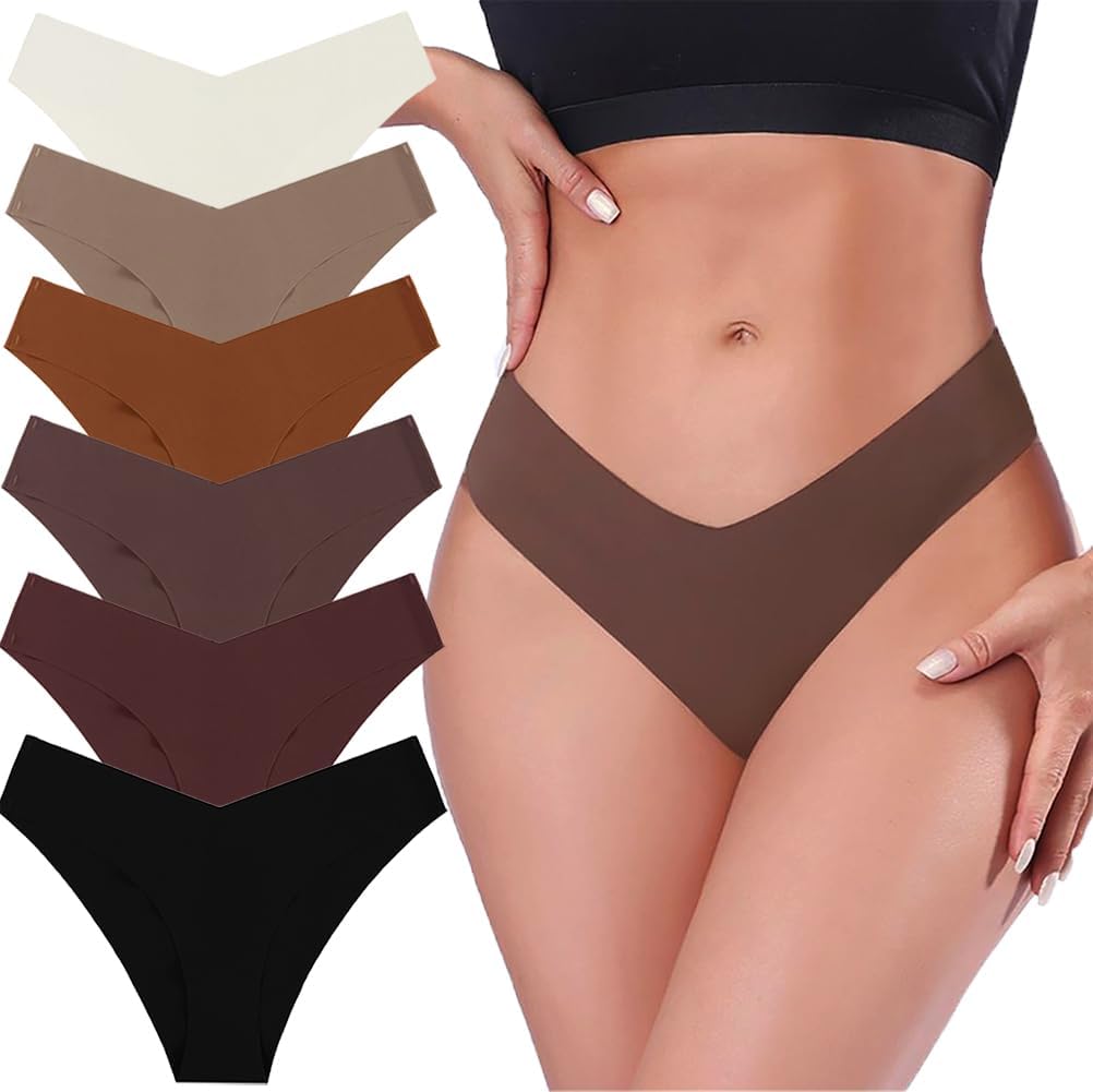 Low Rise Seamless Thongs for Women No Show Panties V-waisted Sexy Thong Ladies Underwear 6 Pack