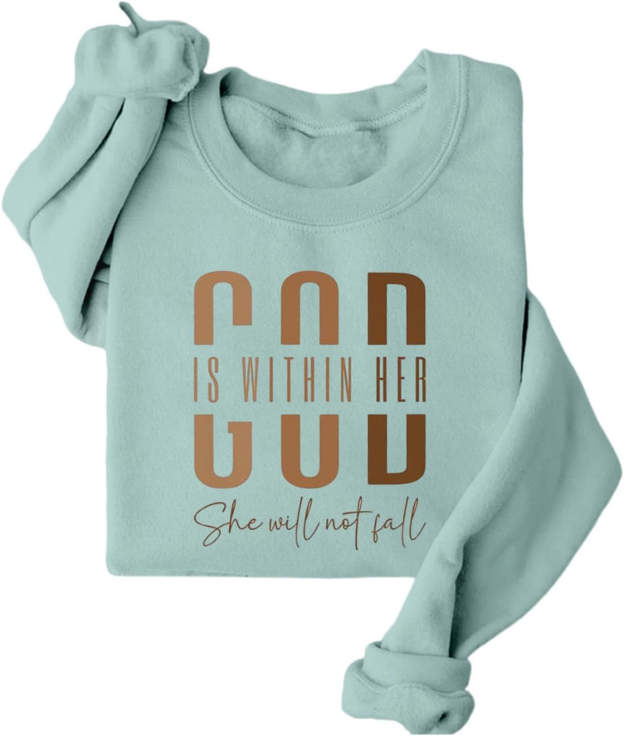 Christian Fleece Lined Sweatshirt for Women God Is Within Her She Will Not Fall Pullover Religious Faith Sweater