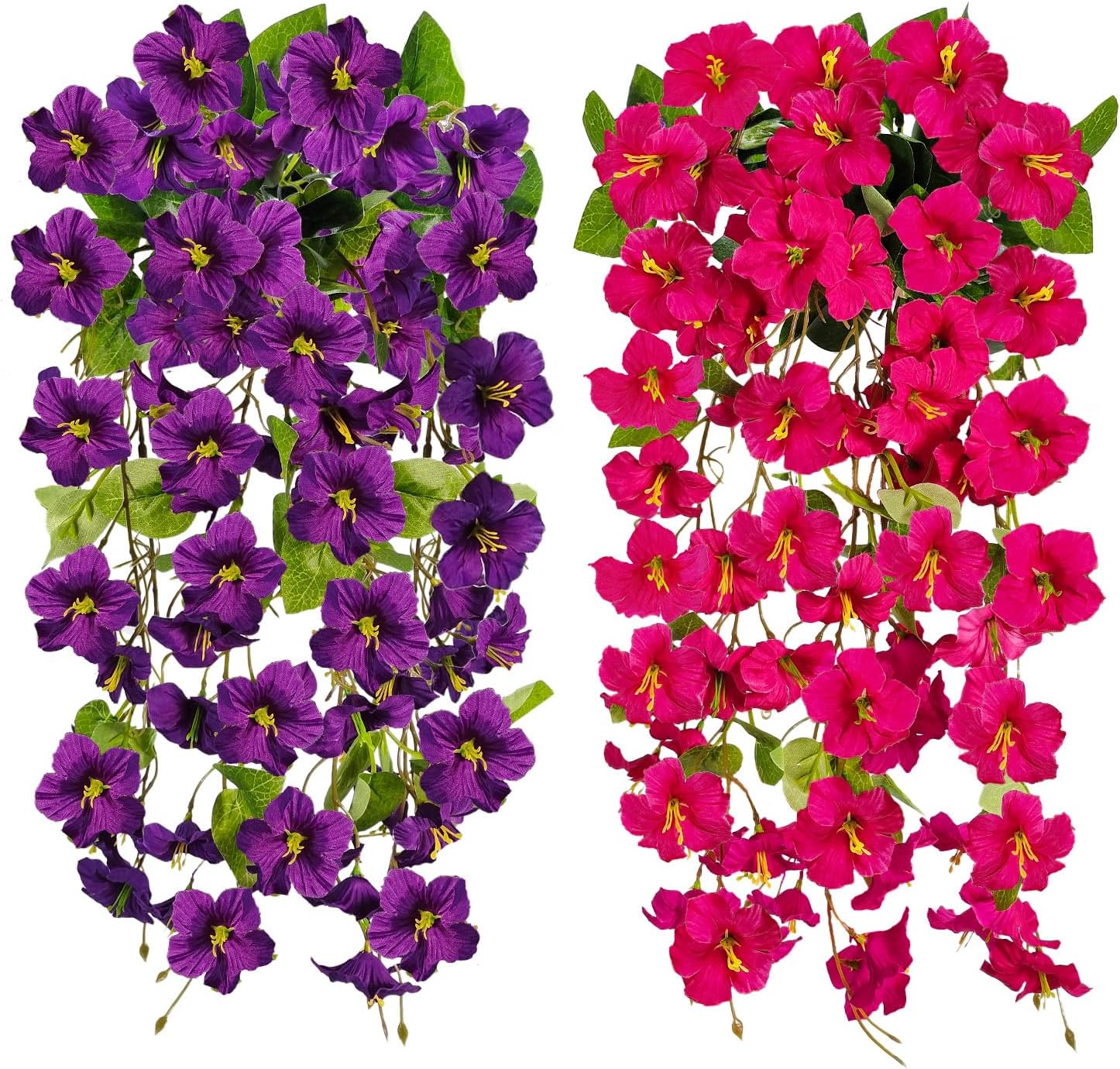 Artificial Hanging Flowers for Outdoors Decoration, 2 Bundles Outdoor Flowers UV Resistant Silk Morning Glory Fake Flowers for Front Porch Garden Window Box Outside Indoor Decor (Mixed Colors 2)