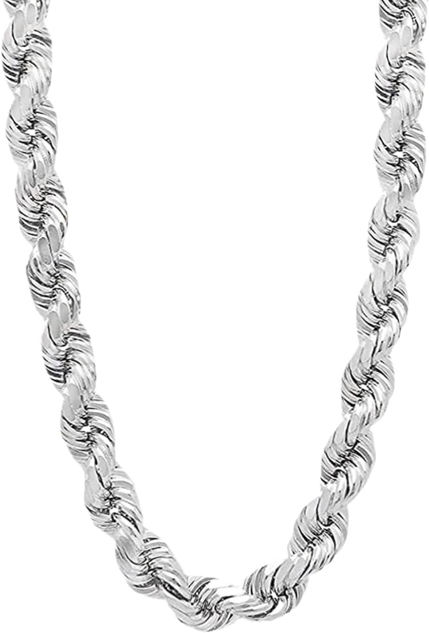 Savlano 925 Sterling Silver 8MM Hollow Italian Rope Diamond Cut Twist Link Chain Necklace for Men & Women Comes with Gift Box- Made in Italy