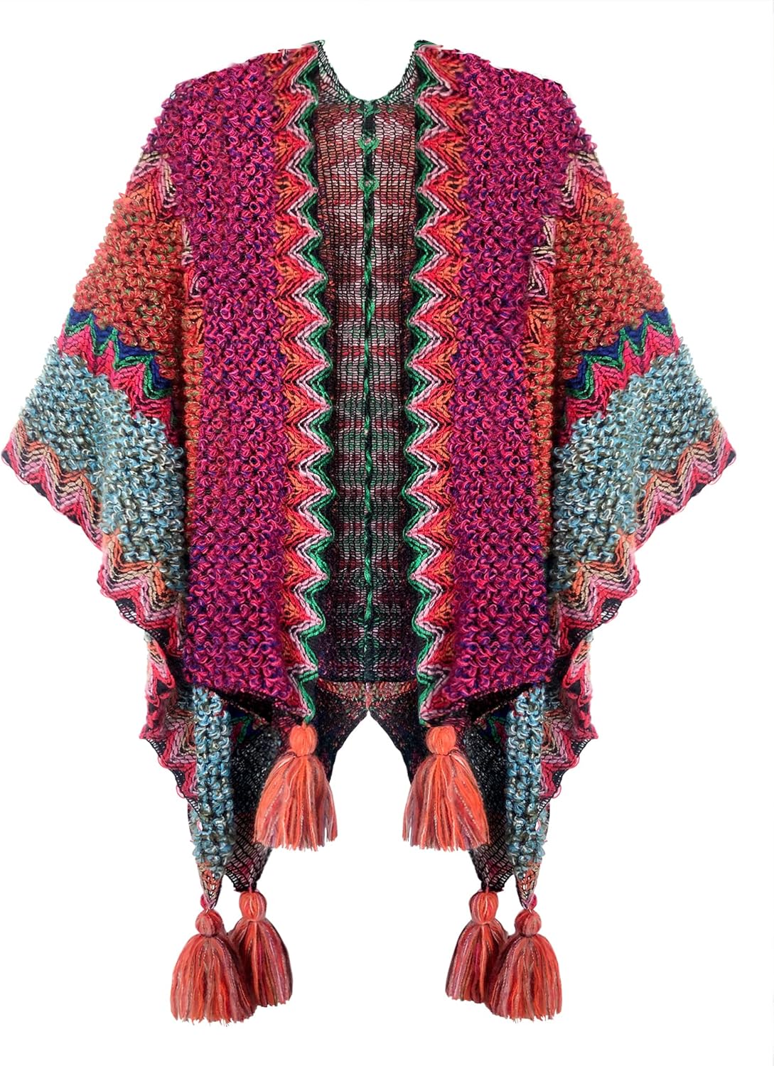 Urban CoCo Women's knit Vintage Ethnic Tassel stripe Poncho Shawl