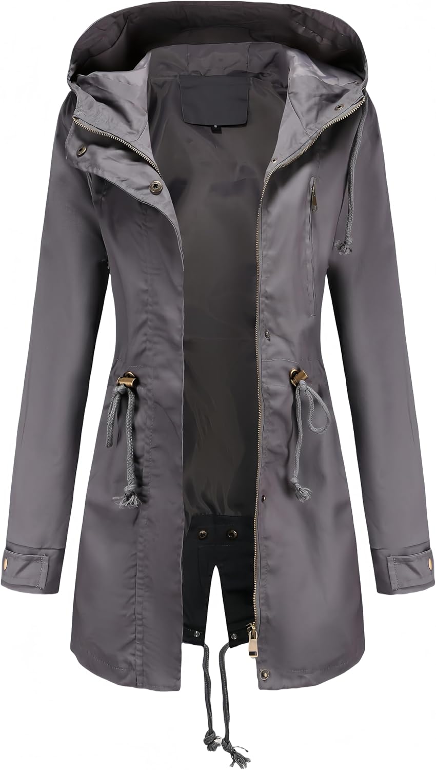 Women Trench Coat Windbreaker Zip Up Jacket With Pockets Casual Long Sleeve Outwear with Waist Drawstring