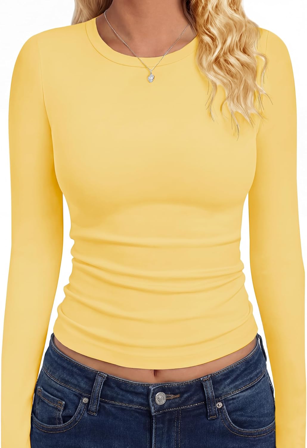 GAYHAY Long Sleeve Shirts for Women Basic Crop Tops Teens Crew Neck Tight Underscrub Clothes Workout Fall Trendy 2025