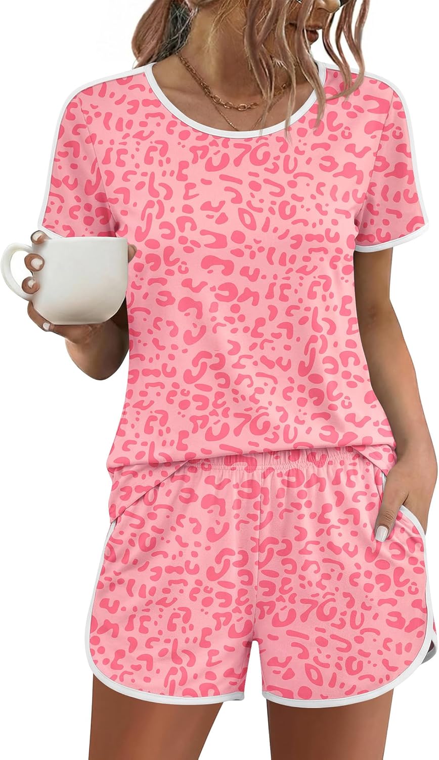 Ekouaer Womens Pajama Sets Short Sleeve Sleepwear Soft Pjs Sets Round Neck Summer 2 Piece Lounge Set with Pockets S-XXL