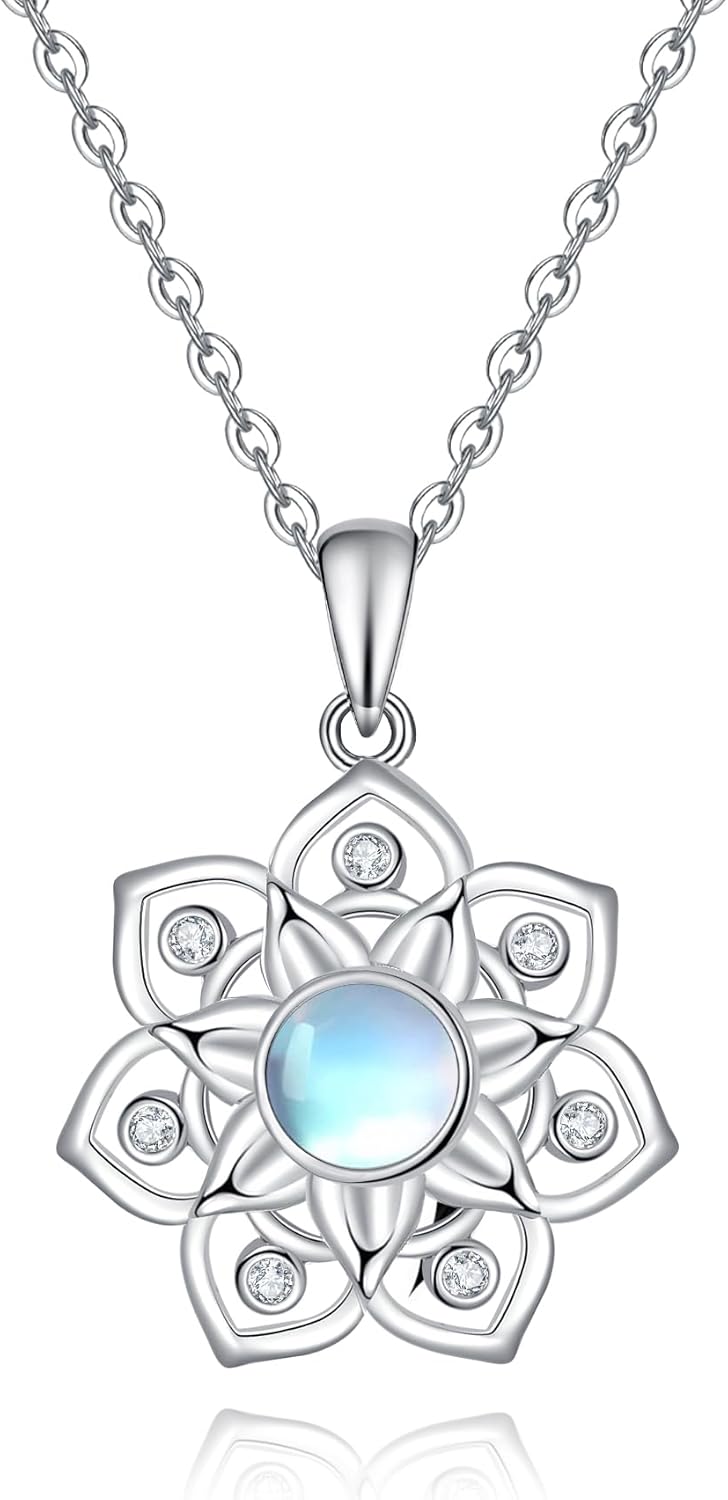 Lotus Yoga Chakra Moonstone Pendant Necklace S925 Sterling Silver Necklace Yoga Gifts for Sister Daughter Women