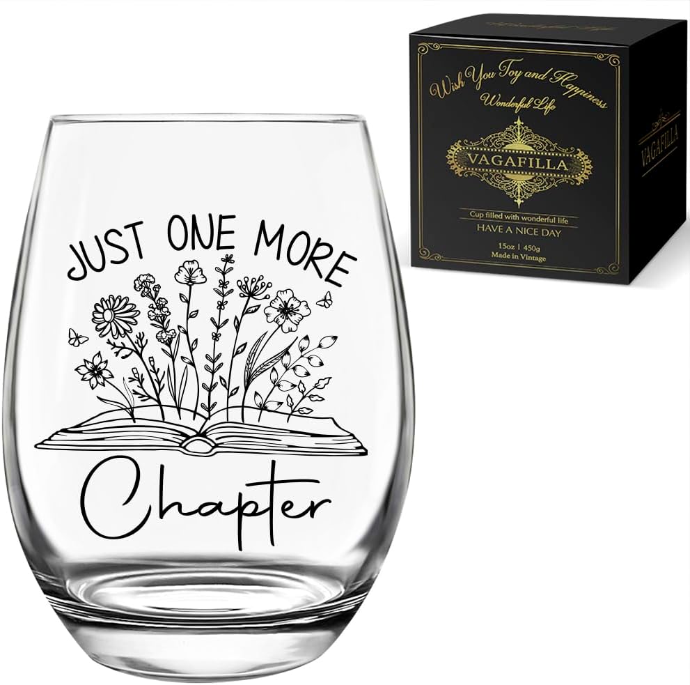 Just One More Chapter,Funny Wine Glass Gifts for Book Lover Writer,Christmas Birthday Gifts For Women, Best Friend,daughter